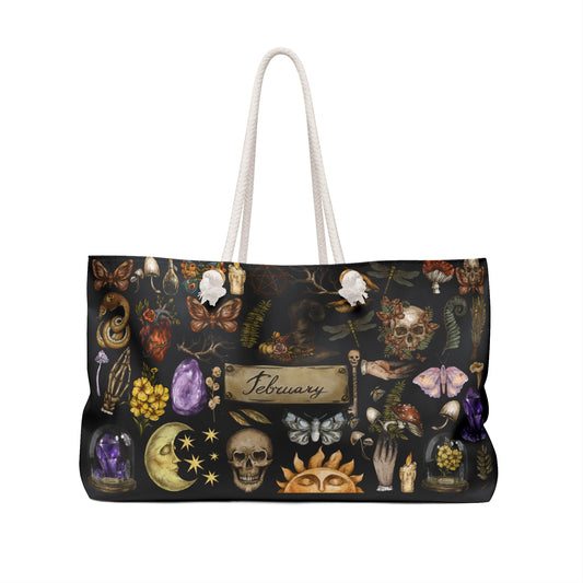 Witchy February Birthstone and Birth Flower Weekender Bag