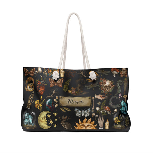 Witchy March Birthstone and Birth Flower Weekender Bag