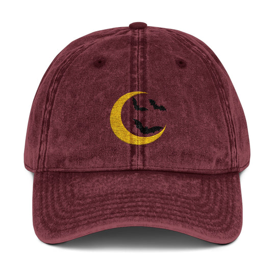 Embroidered Vintage Cap - Crescent Moon and Bats Design