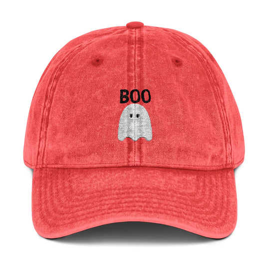 Embroidered Vintage Cap with Ghost and Boo Embroidery