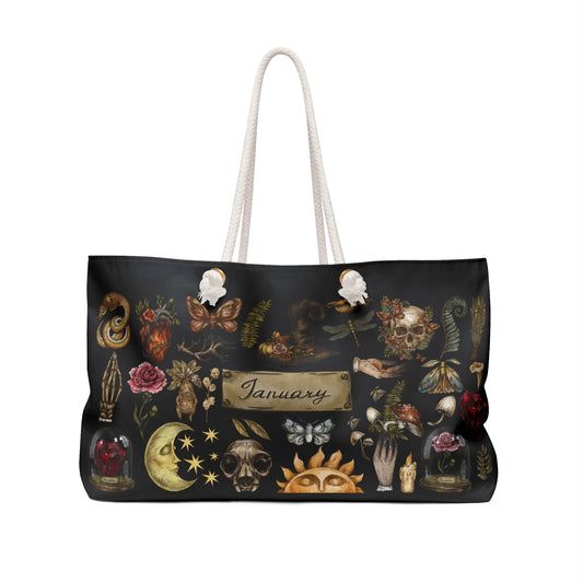 Witchy January Birthstone and Birth Flower Weekender Bag