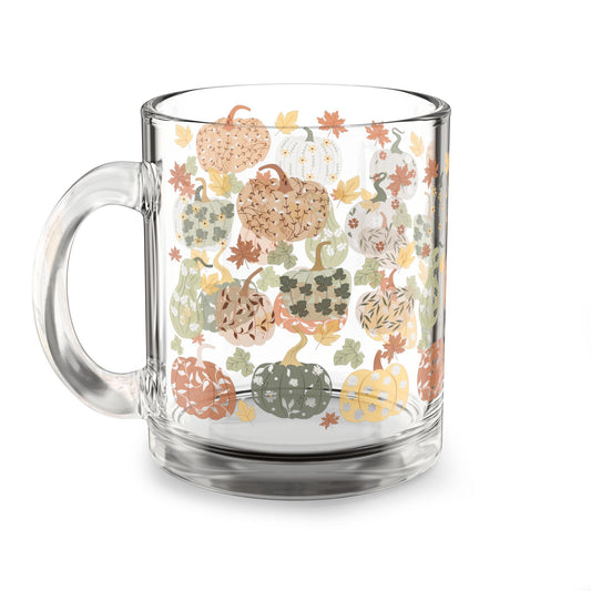 Autumn Pumpkin Glass Mug | Cozy Fall Beverage Cup | 10oz