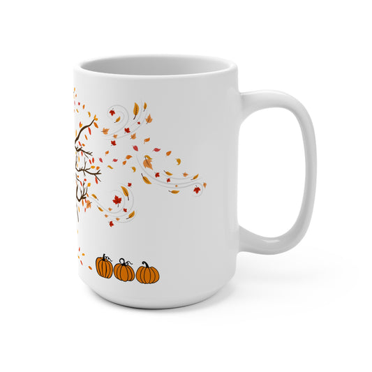 Autumn-Themed 15oz Mug with Pumpkins and Ghost