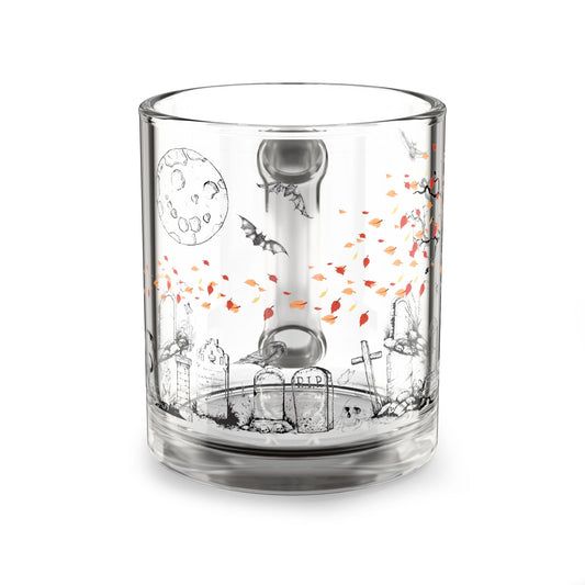 Night At The Cemetery 10oz Glass Mug with Autumn Leaves Design