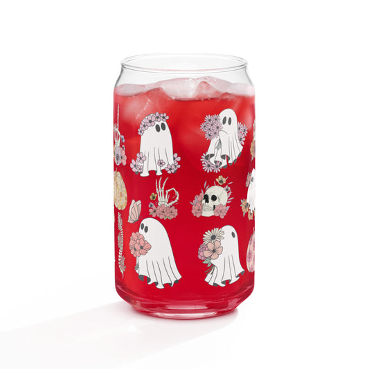 Flower Power 16 oz Can Glass – Spooky Spring Ghosts & Floral Design